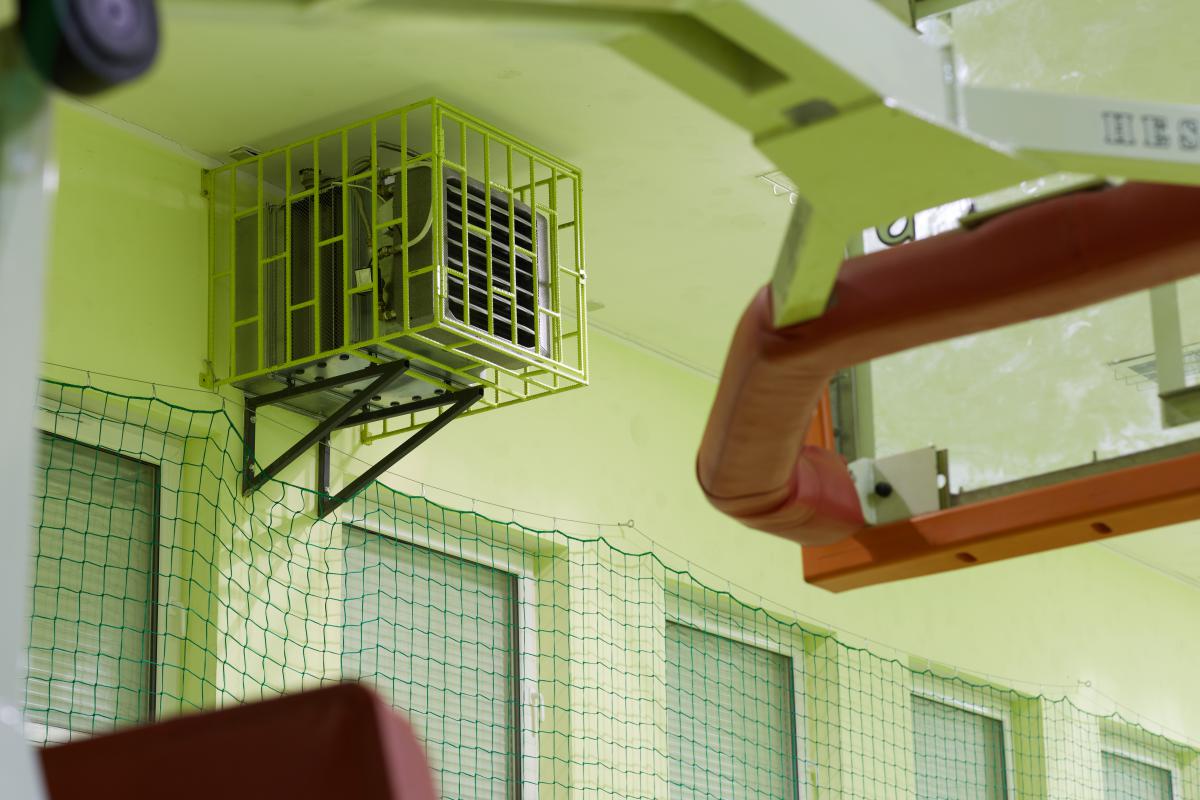 The simplest ventilation system for large size buildings. Air heater combined with mixing chamber to create a heating and ventilating device. It is the simplest way to install mechanical ventilation using as little energy as possible without additional systems.