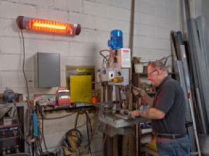 Sharklite – a wall or stand mounted halogen infrared heater. It transforms 100% of the input power into heat instantly (within 1 second) with no pre-heating required, resulting in a considerable saving of energy by direct heating only when necessary. The heat is produced by shortwave infrared radiation from the lamp, which is maximized by a specially designed parabolic reflector. The heat is directed at people and objects in a direct, concentrated and homogenous way, even at a distance, and without dispersion from draughts. An area of up to 12 m2 can be heated.