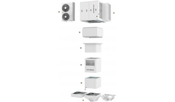 Main roof module for air supply and extract unit with heat recovery and recirculation function, nominal air flow 8000 m³/h at 250 Pa, modulating energy saving EC fans, ePM2.5 65% (~F7) fresh air intake pocket filter, ePM10 50% (~M5) extracted room air cassette filter, 47 dB(A) sound pressure level at 10 m distance from unit, rotary heat exchanger with over 74.1% recuperation efficiency, recirculation damper ensures even regulation of fresh and recirculated air, Flowair control System with T-box Zone control panel allows devices to be connected to BMS, roof module weight ~600 kg, 2 years WARRANTY for all modules |
